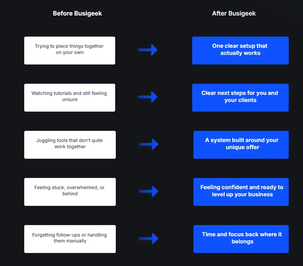 I started Busigeek because too many entrepreneurs waste months trying to figure out tech, software tools, and systems on their own — and never get to launch.